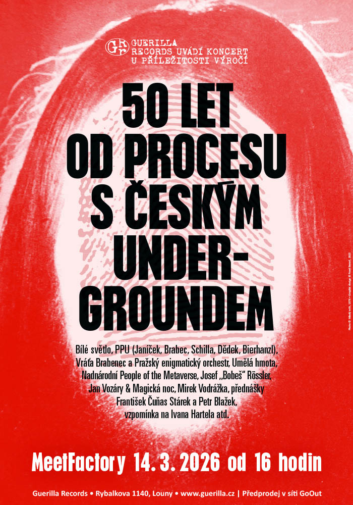 | sobota | 14.3.2026 | 16:00 | 50 let od procesu s českým undergroundem. Meet Factory, Praha 5, Ke Sklárně 3213/15 |